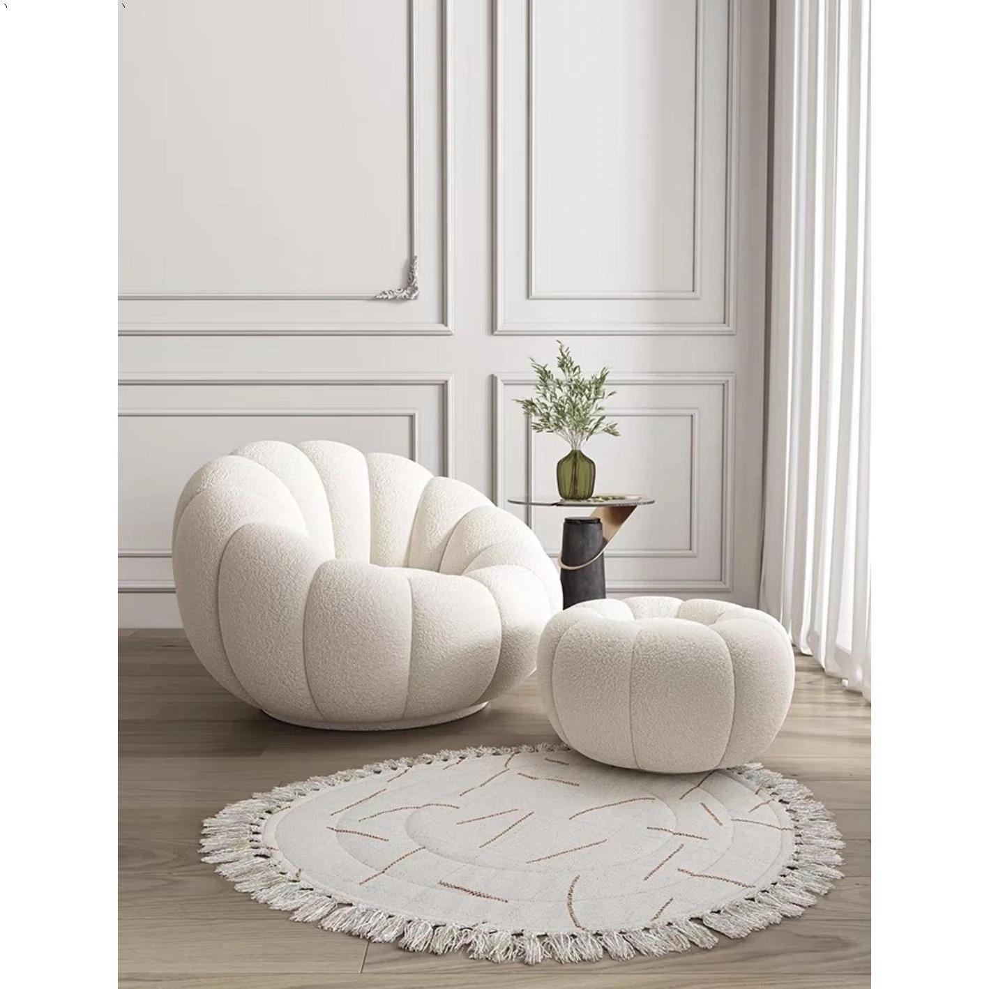リラックスできる南瓜型ソファ!一人用・二人用のラウンジチェア、ふわふわの羊毛生地で快適。バルコニーやリビングにぴったり、回転機能付きで寝転びもOK!人気のネットトレンド商品です。