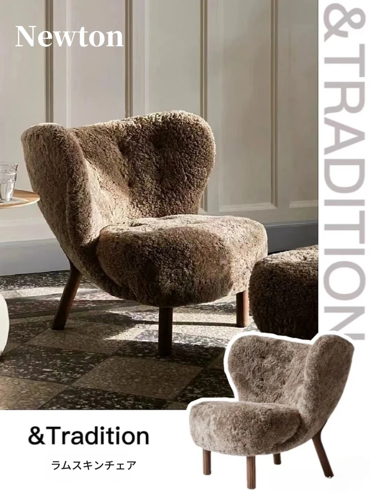 リトルペトラのレトロデザイン、クリーミーなラムウールを使用したルームチェア。リラックスできる贅沢な一人掛けソファで、居心地の良いリビングルームを演出します。