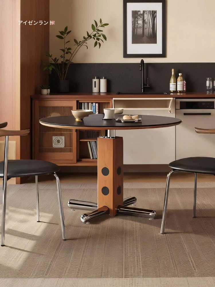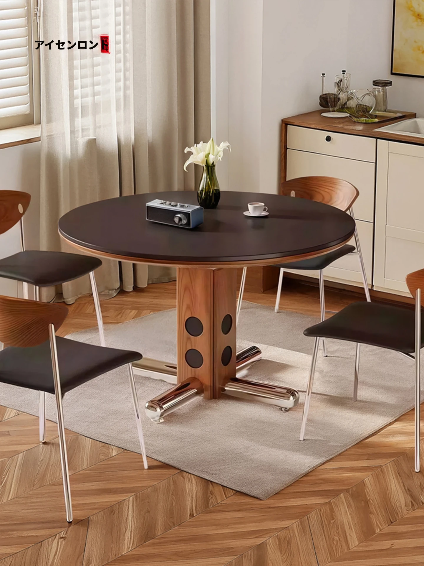 アイセンラント ビンテージ風 丸型岩板ダイニングテーブル 小型住宅向け バウハウススタイル 天然木製 おしゃれな食卓 使い勝手抜群の中古品!