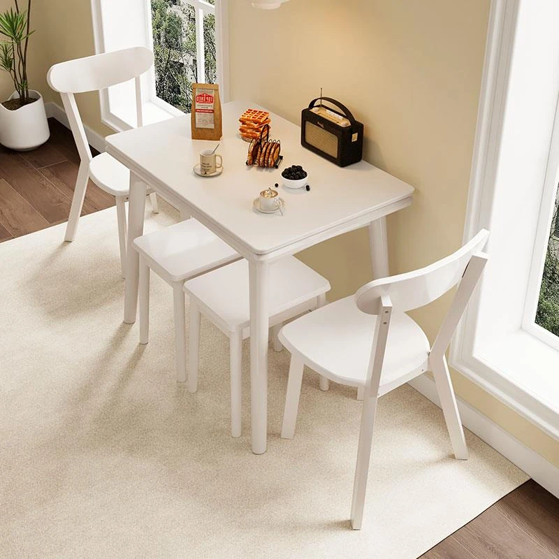 [香港送料無料] 折りたたみ可能な岩板ダイニングテーブル - 小型住宅向け、実用的な無垢材使用のモダンシンプル長方形ホワイト!スペースを有効活用し、スタイリッシュな食卓を実現!